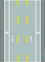两条双黄虚线内是一条车道,这是潮汐车道线,根据早晚交通流量不同的情况,通过车道信号灯控制潮汐车道的行驶方向,就像大海涨潮退潮一样。