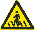 黄色标志表示警告、注意的意思,图中是一个行走的人,答案是注意行人。