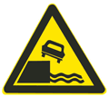图中的车应该在堤坝上行驶,表示前方是堤坝路