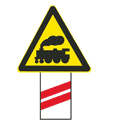 这个标志由两部分组成,上面三角形中是火车头,表示无人看守铁路道口,下面有两条红杠,每条红杠表示50米,答案是距无人看守铁路道口100米