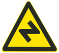 图中是两个弯,意思是反向弯路,题目说的是道路易滑,答错