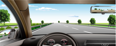 如图所示,在高速公路同方向两条机动车道左侧车道行驶,应保持什么车速?