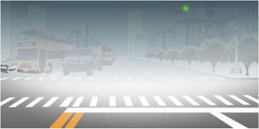 如图所示,在这种雾天情况下,通过交叉路口时必须开灯、鸣喇叭,加速通过,以免造成交通拥堵。