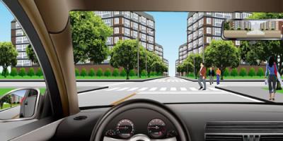 如图所示,机动车遇行人正在通过人行横道时,要停车让行,是因为行人享有优先通行权。