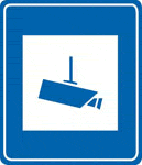 看图中间是一个监控摄像头,表示前方道路有交通监控设备。