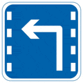 这是蓝色的方形标志两侧有白色虚线,表示车道,标志里面有一个向左转弯,,答案选左转车道。