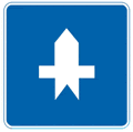图中标志像火箭,表示主干路车辆优先通行,只有主干道优先的,没有辅路优先的说法。