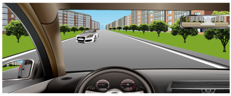如图所示,在这种情况下,会车时必须减速靠右通过。